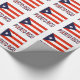 A bandeira porto-riquenha vermelha, branca e azul com as palavras PUERTO RICO por baixo. A bandeira tem três faixas vermelhas e duas brancas com um triângulo azul no lado esquerdo. Dentro, o centro do triângulo é uma estrela branca. Ofereça papel de embrulho para compartilhar sua herança.