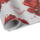 Uma ilustração nobre de Natal: Uma caixa de presentes vermelha com uma bola vermelha de Natal, fita e pérolas vermelhas.