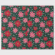 Papel De Presente Preppy Christmas Poinsettias & Snowflakes on Green