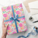 Papel De Presente Preppy Palm Beach Impressão Rosa e Flores Amarelas