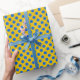O papel de embrulho azul e amarelo na bolinhas ucraniana representa o invólucro bolinhas inspirado na bandeira da Ucrânia para o Dia da Independência da Ucrânia ou para apoiar a Ucrânia em qualquer outro dia. Um presente perfeito para celebrar a vitória ucraniana, e como gesto patriótico para qualquer ocasião!
