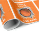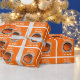 Invólucro criativo de presentes de basquete com design de bola para o dia, linha engraçada e basquete de bola em fundo laranja.