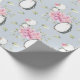Pinguins de bebê, cor-de-rosa e papel de moldagem de presente azul.