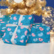 "Papel de embrulho Mr e Mrs Balões Presente de Casamento Azul Sem Costura" apresenta balões de casamento "Sr." e "Sra.", simbolizando amor e união, perfeito para presentes de chá de noiva ou dia do casamento.