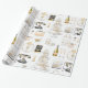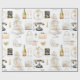 Papel de embrulho listrado apresenta magnólias, itens de presente de casamento preto, dourado e creme.