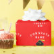 Papel de presente de formatura criativo para a turma de '26 com um chapéu de formatura preto com borla dourada em fundo vermelho. Para personalizar, edite o texto para adicionar o nome dele ou dela.