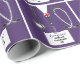 Criativa enfermeira giftwrap felicita a design que apresenta esfregões de hospital roxo e ilustração do estetoscópio. Editar texto para adicionar o nome da enfermeira.