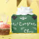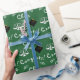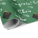 Encapsulamento de presentes ou decoração de festas de formatura da escola de direito. Giftwrap apresenta bonés pretos e dourados e escalas de justiça em fundo verde. Para personalizar editar texto para adicionar o nome do formando.