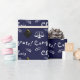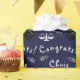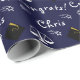 Papel de presente criativo para formatura na faculdade de direito e decoração de festa de formatura com fundo azul marinho. Para personalizar, edite o texto para adicionar o nome do graduado.