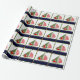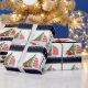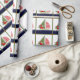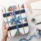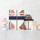Embalagem criativa de presentes de férias à vela com Papais noeis em um veleiro. Para personalizar editar texto para adicionar nome.