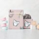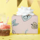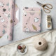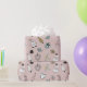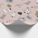 Prepare-se para embrulhar presentes de Natal e colocar seus presentes debaixo da árvore com presentes embrulhados neste papel de embrulho de Natal giro e rosa. Este presente de Natal apresenta um fundo cor-de-rosa macio com ilustrações doces de desenhos animados de árvores de Natal, pinguins, corações, bonecos de neve, botas, conhaque, corujas e galhos de pínus.