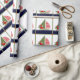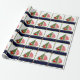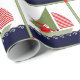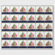 O criativo velejando o embrulho de presente de Natal ou decoração de festas com Papais noeis em um barco.