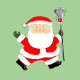 Embalagem legal para presentes de Natal de lacrosse com Papais noeis de desenho animado com um bastão de lax cercado por doces de Natal.