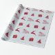 Papel de embrulho de presente de Natal Mínimo moderno e feliz Tipografia de Natal com interior, árvore, caixa de presentes.