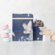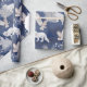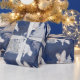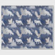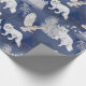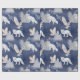 Um rico fundo azul escuro com uma bela cena de montanhas em um padrão com pinheiros de neve, raposas brancas e corujas de neve voadoras. Este presente de Natal é perfeito para seu presente de Natal nesta temporada.