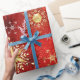 Papel De Presente Presente de Natal Vermelho Dourado com flocos de n