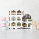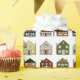 Embrulhamento de presente do Creative Realtor com linhas coloridas de novas casas artísticas para o agente imobiliário ou presente de lar do cliente.