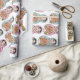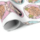 Rosa pastel macio e ilustrações coloridas azul da boneca do aninhamento repetidos em um teste padrão. O trabalho tirado mão da tinta, colorido com o marcador impresso no papel de envolvimento da qualidade limita então em um rolo.