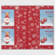 Bonita, engraçada e elegante papel de embrulho de Natal com Papais noeis em sua fantasia vermelha (segurando uma cana doce) e sua rena favorita, Rudolph, atrás dele. O texto diz "Feliz Natal! Este presente é para Jayden do Papai Noel" — certifique-se de personalizar o nome do garoto. Você também pode mudar a saudação, se quiser. A design também inclui duas bolas vermelhas com flocos de neve, e uma paisagem nevada, em meio a uma cena de inverno com flocos de neve sobre fundo vermelho de Natal.