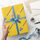 Giftwrap único de lacrosse com desenho de lax stick e bola em fundo amarelo para jogador de lacrosse, festas, treinador ou fã desportiva de equipe.