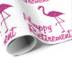 Feliz aposentadoria cor-de-rosa brilhante flamingo Texto personalizado Papel de empacotamento de presente. Lindas cinzas brilhantes e brilhantes brilham no verão, exóticas aves flamingas. Foto de faíscas cor-de-rosa não é uma falha real!