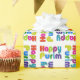 O purim feliz é um divertimento 3-D como o presente colorido do cumprimento em cores brilhantes lindos. É um presente perfeito para uma celebração perfeita. Desejando lhe um Chag Sameach e um Purim feliz:)