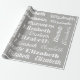Mude facilmente o nome do modelo a um do seus próprios. Personalize para fazer um papel de envolvimento monogrammed personalizado em cinzento e em branco. Um presente elegante para alguma ocasião como um casamento, um aniversário, um aniversário, uma graduação, um chá de fraldas ou um chá de casamento. Escolha a cor do fundo, como desejado.