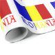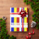 A bandeira romena é um tricolor vertical com faixas azuis, amarelas e vermelhas. Esta design apresenta a palavra ROMÊNIA sob a bandeira nas cores da bandeira. Compartilhe papel de embrulho de presente com sua herança também.