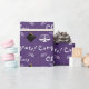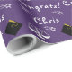 Encapsulamento personalizado para a graduação em Direito, embrulho de presente e decoração de festas de formando com escalas de justiça em fundo roxo. Para personalizar editar texto para adicionar seu nome.