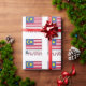 A bandeira malaia tem catorze listras, sete vermelhas e sete brancas. Eles se alternam. Há uma área azul no quadrante superior esquerdo com uma lua crescente e a Bintang Persekutuan, uma estrela de catorze pontos. Abaixo da bandeira está a palavra MALAYSIA nas cores da bandeira. Compartilhe sua herança com este papel de embrulho de presente.