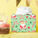 Um presente de Natal criativo com Papais noeis únicos que jogam bola no chute e um padrão de doces de férias.