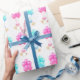 Papel de presente para gêmeos bebê menino e menina ou decoração de chá de bebê com recém-nascidos gêmeos menina e menino sob balões rosa e azuis.