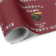 Papel de presente de formatura criativo para graduado da turma de '26 com chapéu de formatura preto e borla dourada em fundo vinho. Para personalizar, edite o texto para adicionar o nome dele ou dela.