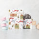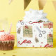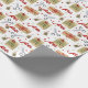 Presentes enrolados, fitas vermelhas, etiquetas de presentes e tesouras de embrulhar papel - diversão para doação de presentes de feriado, desvinculação e muito mais.