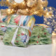 Presas de Natal, belos pacotes de férias com aquarelas com grande aquarela, bolas coloridas de decoração e árvores de férias.