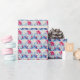 Três belas caixas de presentes brancas de Natal amarradas com adoráveis fitas vermelhas de cetim e prata com arcos. Cores não tradicionais de azul, vermelho e branco.