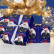 Esta design apresenta um retrato de Joe Biden vestindo um chapéu de Papai Noel em um fundo azul e branco.
