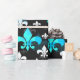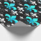 Papel De Presente Preto Azul Branco Flor De Lis
