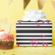 Papel De Presente Preto branco rosa FLamingo Dará monograma dela