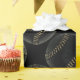 Um beisebol com tema esportivo em preto. Você pode editar o design ('personalizar') e alterar a cor do plano de fundo ou adicionar um nome entre as costuras da bola