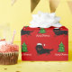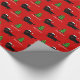 O papel de envolvimento bonito e engraçado dos desenhos animados do Dachshund para o preto de cabelos compridos e o Dachshund de Tan ventila!! Um Doxie de vista considerável está andando com chapéu do papai noel. Design vermelho do Natal. Você pode personalizar o texto e o mais! Desenhos animados originais e engraçados do cão criados por Naomi Ochiai de Japão.