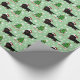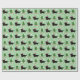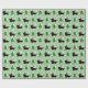 O papel de envolvimento bonito e engraçado do Natal dos desenhos animados do Dachshund para o Dachshund ventila!! O Dachshund preto e tan de cabelos compridos está andando feliz com chapéu do papai noel. Você pode personalizar o texto e o mais! Verde claro da hortelã com os flocos de neve minúsculos no fundo. Os desenhos animados originais e engraçados do cão criaram por Naomi Ochiai de Japão.