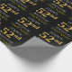 Este design de papel de embrulho apresenta uma mensagem como "FELIZ 52º ANIVERSÁRIO", com o "52º" a ter uma aparência falsa/imitação de ouro. Ele também apresenta um nome que pode ser personalizado, e um fundo de cor preta. Talvez possa ser utilizada quando se dá presentes para o cinquenta segundo aniversário de alguém. [~Z0000130]
