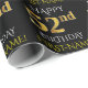 Papel De Presente Preto, Dourado "FELIZ 52º ANIVERSÁRIO"
