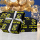 Papel De Presente Preto e Amarelo com risca "8"; 8º Aniversário + No