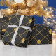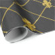 Papel de embrulho elegante no preto e no ouro. Flor de lis Dourado de Featuress, e linhas diagonais Dourados. Aperfeiçoe para um presente para o homem em sua vida.