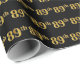 Este design de papel de embrulho apresenta o número normal "89º" com uma aparência falsa em ouro. Ele também apresenta um fundo preto. Pode ser usado no empacotamento de um presente dado para o oitenta nono aniversário de alguém, ou talvez para o oitenta nono aniversário de casamento de um casal casado, ou para algum outro 89º evento/ocasião. [~Z0000019]