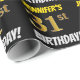 Este design de papel de embrulho apresenta uma mensagem como "JENNIFER'S 31st BIRTHDAY!", com o "31st" a ter uma aparência falsa/imitada de cor dourada, e com o nome e "BIRTHDAY" numa fonte divertida e ousada. O nome pode ser personalizado e o fundo é preto colorido. Um papel de embrulho como este poderia talvez ser usado no embrulho de presentes de aniversário que estão sendo dados a alguém em comemoração de seus trinta anos de primeiro aniversário. [~Z0000203]