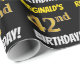 Este design de papel de embrulho apresenta uma mensagem como "REGINALD'S 42nd BIRTHDAY!", com o "42º" a ter uma aparência falsa/imitada de cor dourada, e com o nome e "BIRTHDAY" numa fonte divertida e ousada. O nome pode ser personalizado e o fundo é preto colorido. Um papel de embrulho como este poderia talvez ser usado no embrulho de presentes de aniversário que estão sendo dados a alguém em comemoração de seus quarenta segundos anos. [~Z0000203]