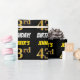 Este design de papel de embrulho apresenta uma mensagem como "43º ANIVERSÁRIO DE JENNIFER!", com o "43º" a ter uma aparência falsa/imitada de cor dourada, e com o nome e "ANIVERSÁRIO" numa fonte divertida e ousada. O nome pode ser personalizado e o fundo é preto colorido. Um papel de embrulho como este poderia talvez ser usado no embrulho de presentes de aniversário que são dados a alguém em comemoração de seus quarenta e terceiro anos. [~Z0000203]